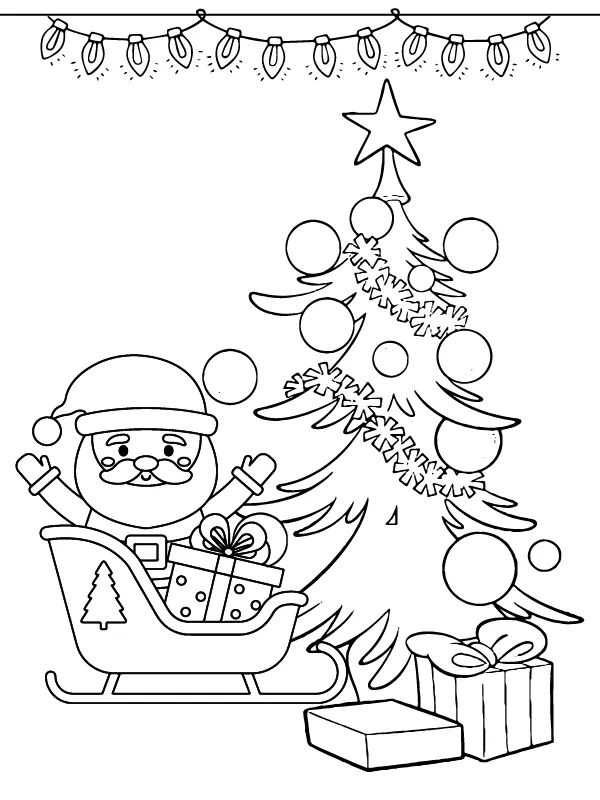Beautiful Simple Christmas Tree and Santa Coloring Scene -