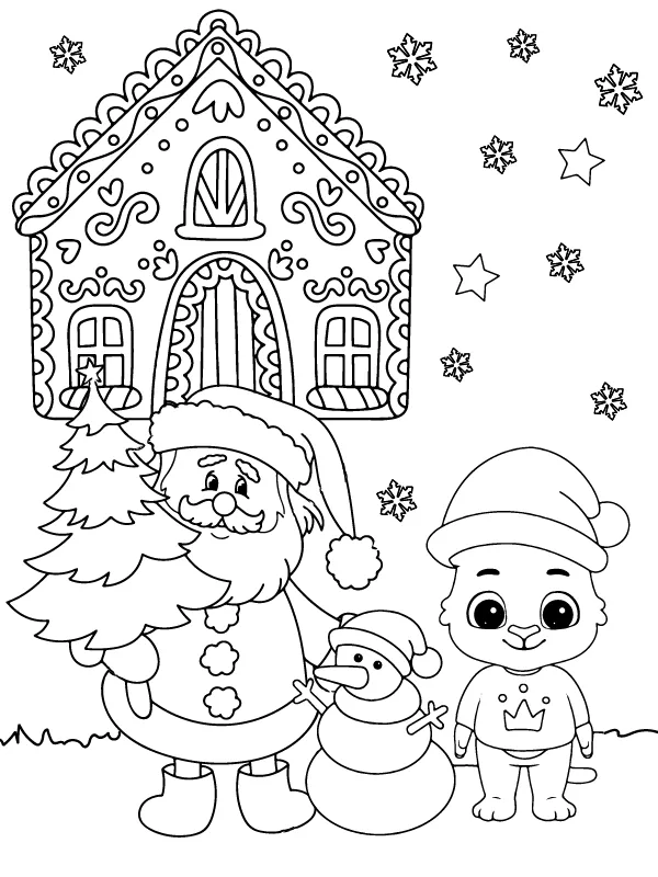 Coloring description : Download Printable Fun Simple Christmas Tree and Santa Coloring Page