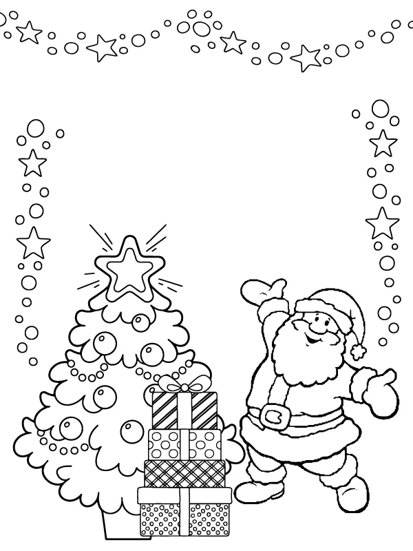 Coloring description : Download Printable Simple Christmas Tree and Santa Coloring Page for Kids Coloring Page
