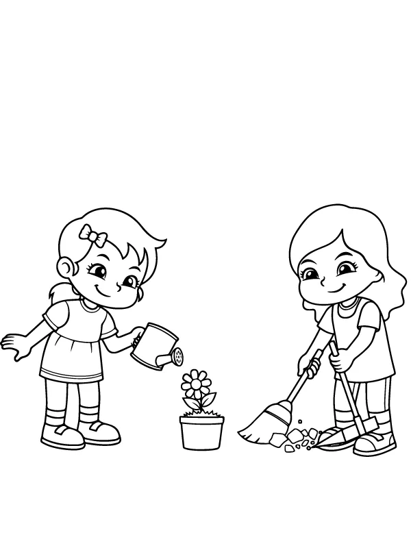 Coloring description : Download Printable Children serve water to the tree Coloring Page