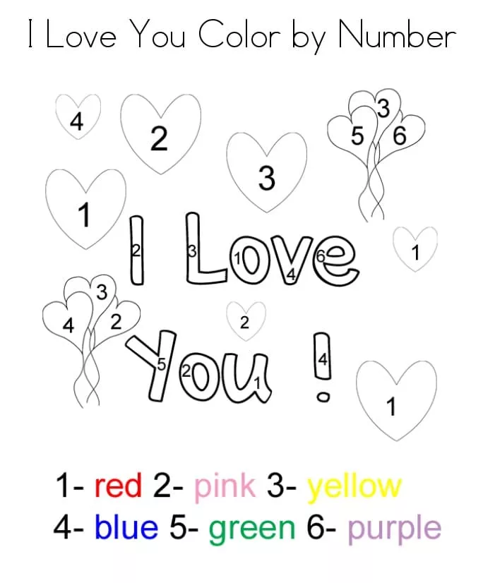 Coloring description : Download Printable I Love You Color by Number Coloring Page