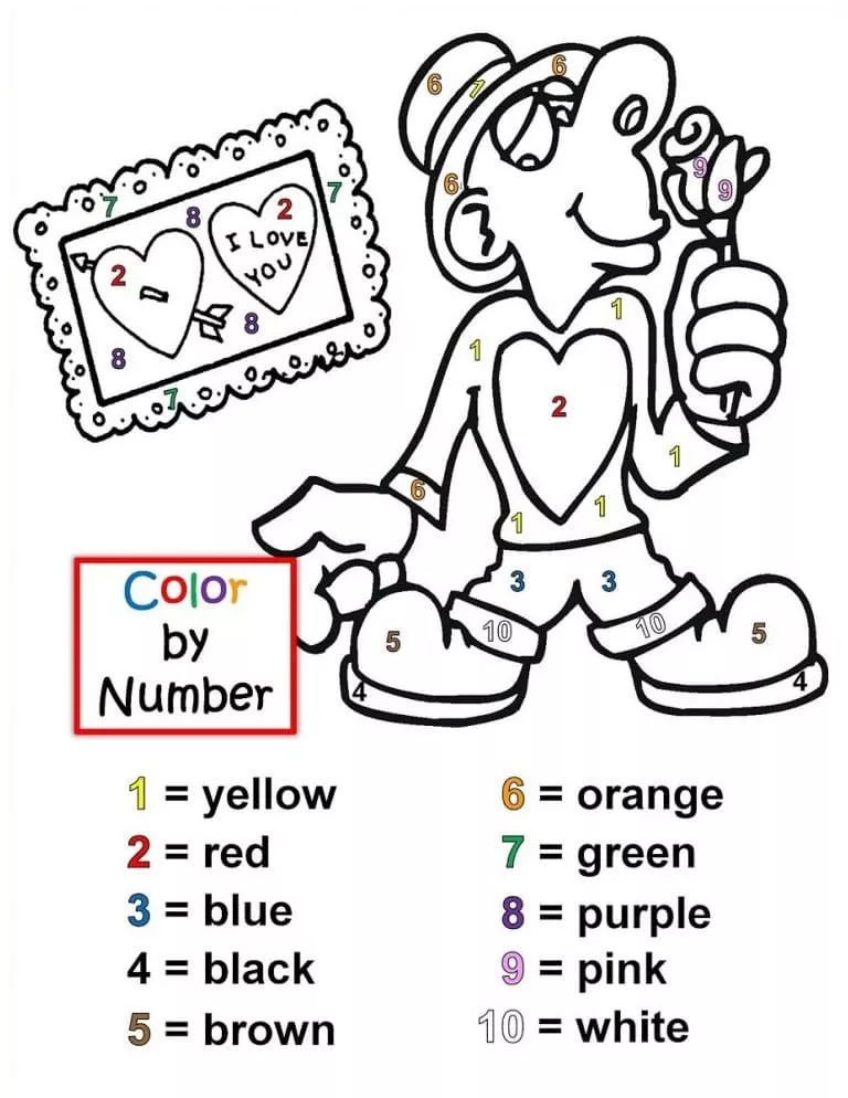 Coloring description : Download Printable Valentine Color by Number Worksheet Coloring Page