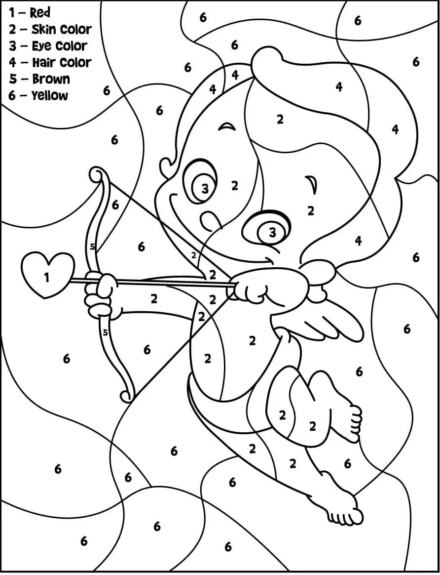 Coloring description : Download Printable Valentine Cupid Color by Number Coloring Page