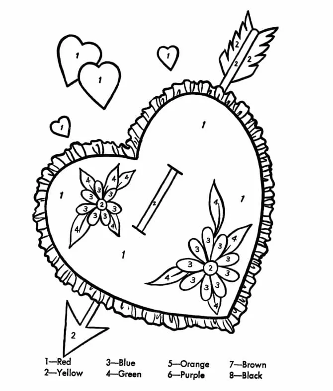 Coloring description : Download Printable Valentine Heart Color by Number Coloring Page
