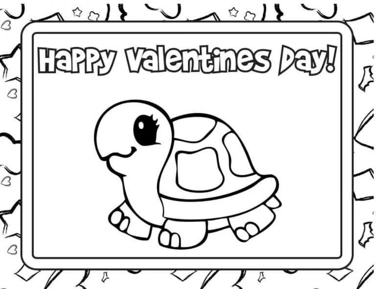 Coloring description : Download Printable Valentine Card with Turtle Coloring Page