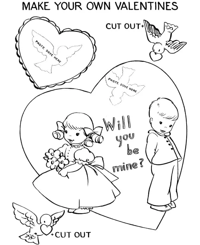 Coloring description : Download Printable Valentine Cut Out Card Coloring Page