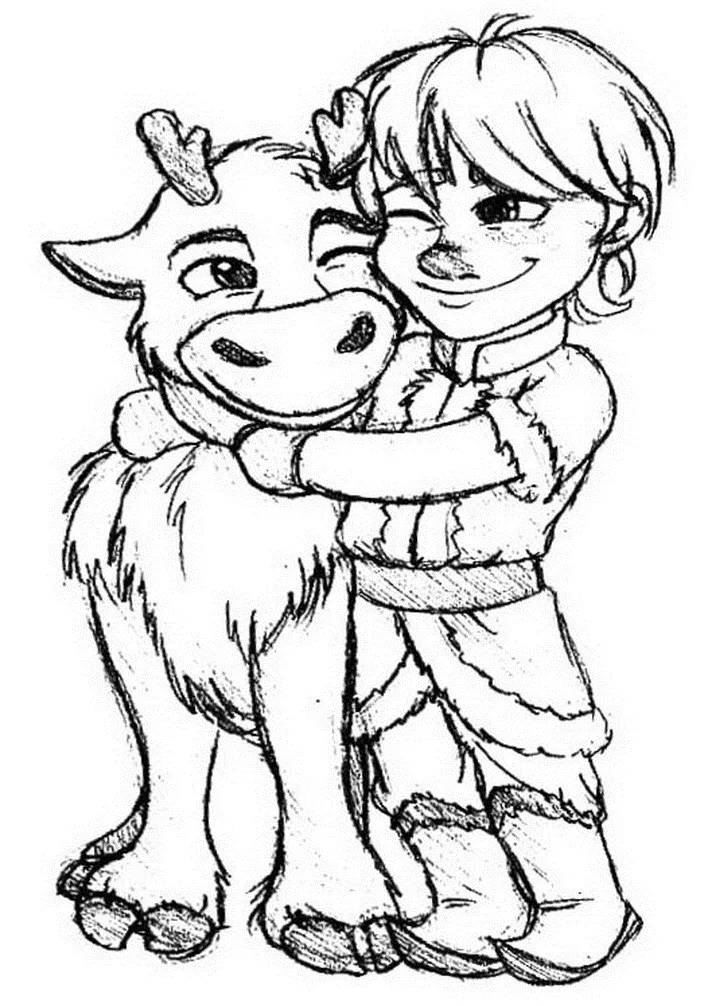 Coloring description : Download Printable Kids Kristoff and Sven Coloring Page