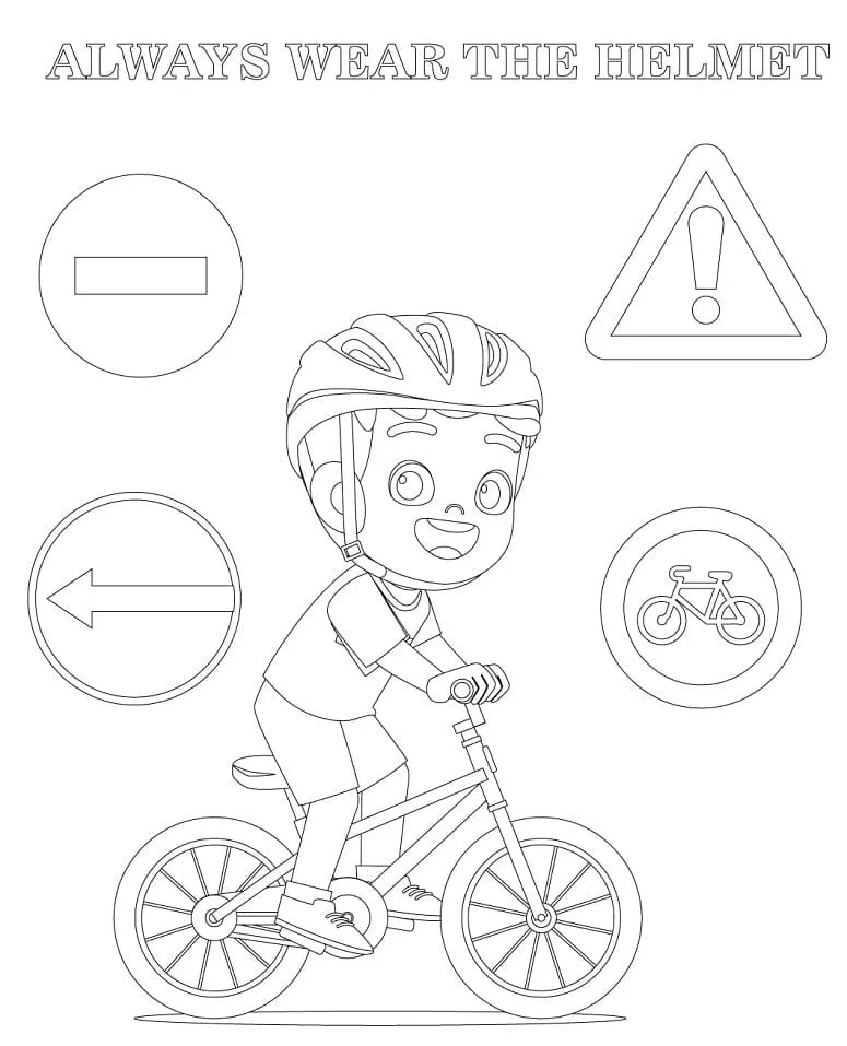 Coloring description : Download Printable Always Wear The Helmet Bicycle Safety Coloring Page