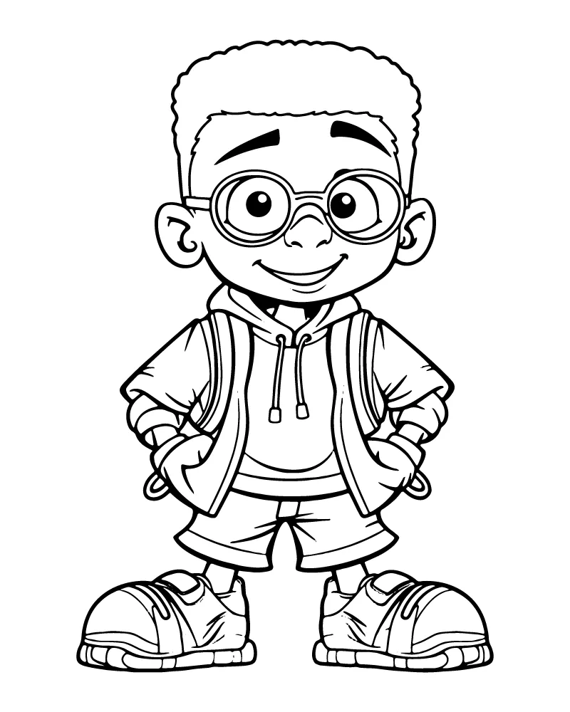 Coloring description : Download Printable Black Boy with Glasses Coloring Page