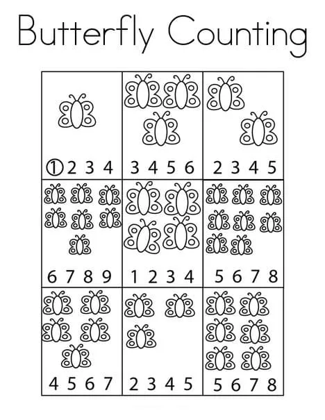 Coloring description : Download Printable Butterfly Counting Coloring Page