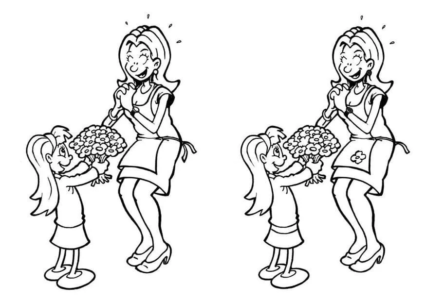 Coloring description : Download Printable Mother’s Day Find The Difference Coloring Page