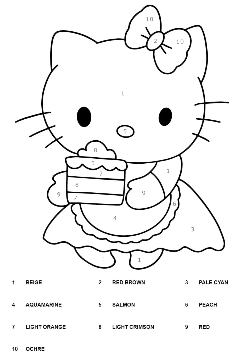 Coloring description : Download Printable Pretty Hello Kitty Color By Number Coloring Page