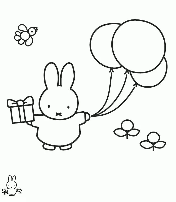 Coloring description : Download Printable Miffy with Gift and Balloons Coloring Page