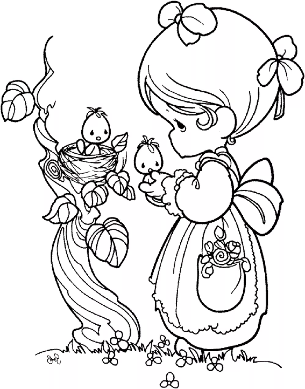 Coloring description : Download Printable Little Girl And Baby Birds Coloring Page