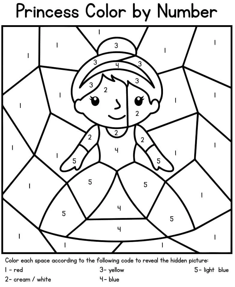 Coloring description : Download Printable Cute Princess Color by Number Coloring Page