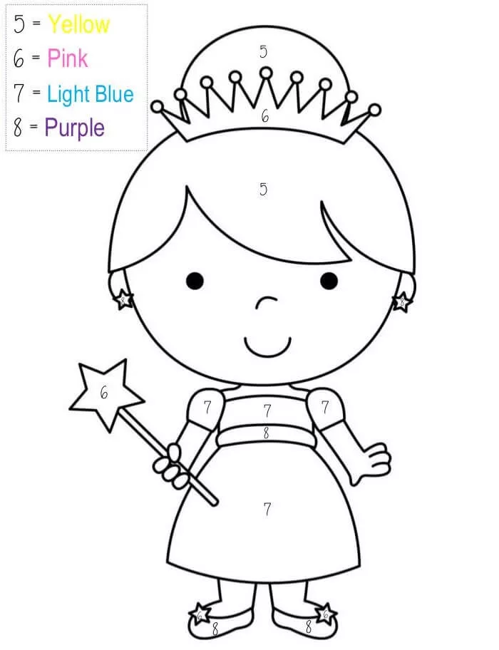 Coloring description : Download Printable Little Princess Color by Number Coloring Page