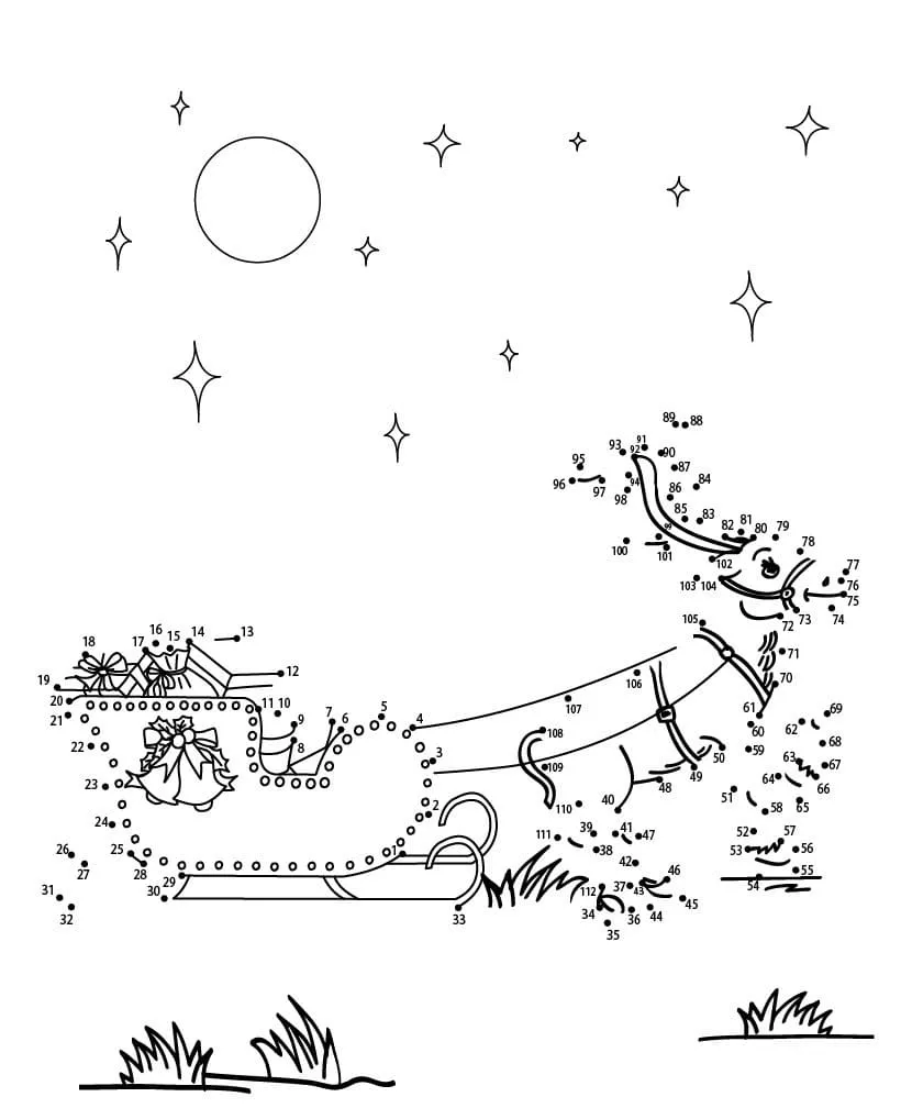 Coloring description : Download Printable Reindeer and Sleigh Dot to Dots Coloring Page
