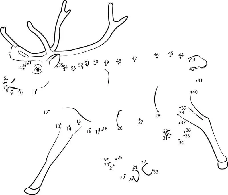 Coloring description : Download Printable Reindeer Running Dot to Dots Coloring Page