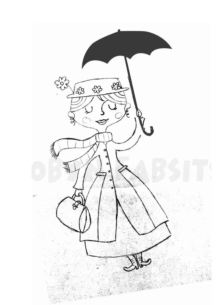Coloring description : Download Printable Lovely Mary Poppins Coloring Page