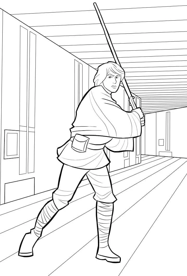 Coloring description : Download Printable Luke Skywalker Holding Lightaber Coloring Page