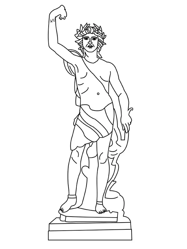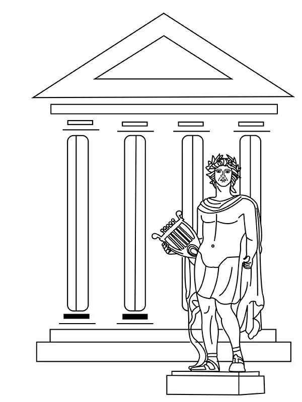 Coloring description : Download Printable Apollo with a Lyre outside the Temple Coloring Page