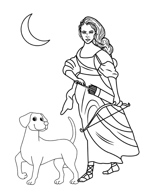 Coloring description : Download Printable The Moon, Dog, and Artemis with an Arrow Coloring Page