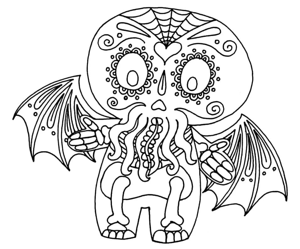 Coloring description : Download Printable Sugar Skull Cthulhu Coloring Page