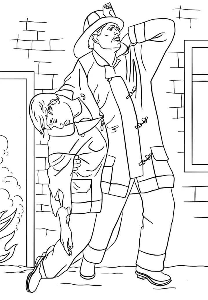 Coloring description : Download Printable Firefighter Rescues Man Coloring Page