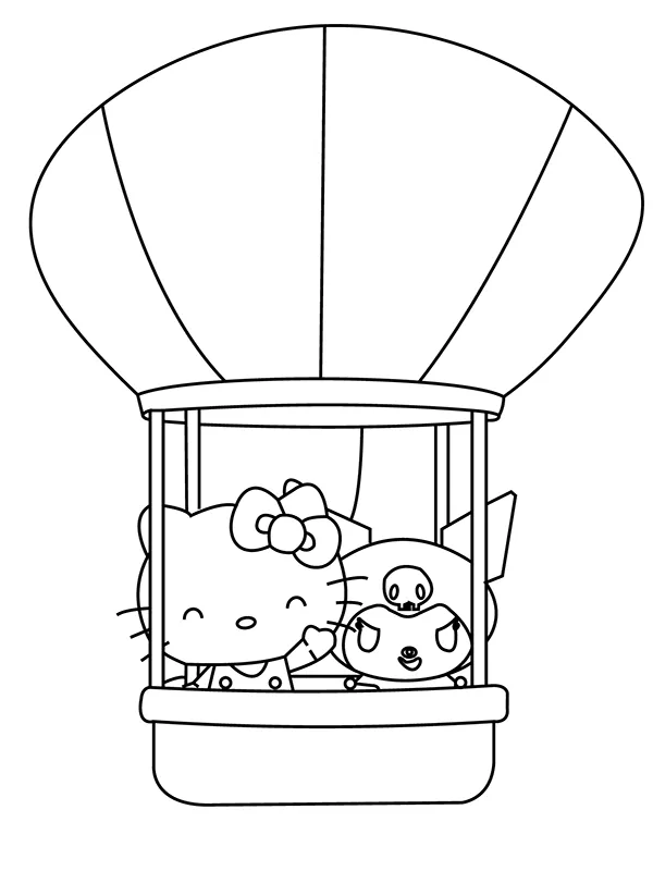 Coloring description : Download Printable Hello Kitty and Friends Flying on the Sky Coloring Page