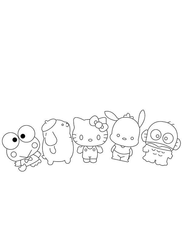 Coloring description : Download Printable Hello Kitty with Happy Friends Coloring Page