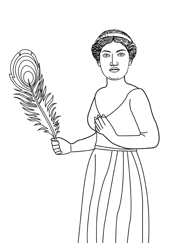 Coloring description : Download Printable Hera Holding Peacock Feather Coloring Page