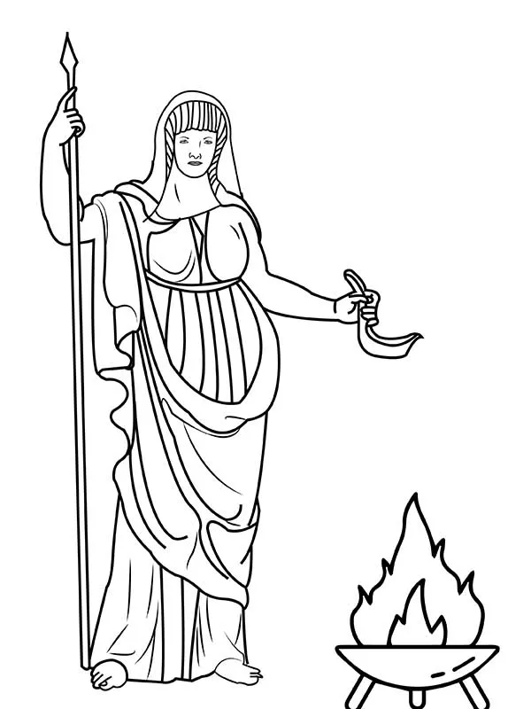 Coloring description : Download Printable Greek Goddess of Hearth Standing Coloring Page