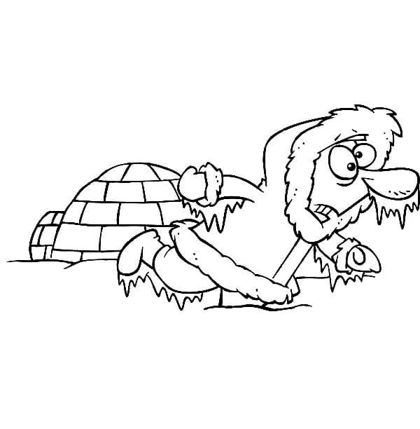 Coloring description : Download Printable Funny Eskimo with Igloo Coloring Page
