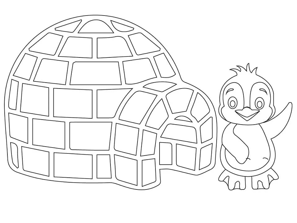 Coloring description : Download Printable Igloo with Penguin Coloring Page