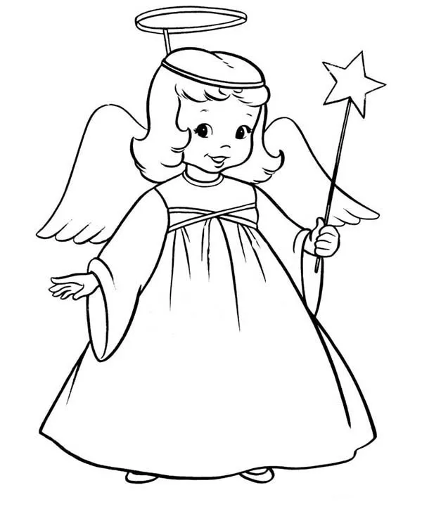 Coloring description : Download Printable Wingled Angel with Magic Wand Coloring Page