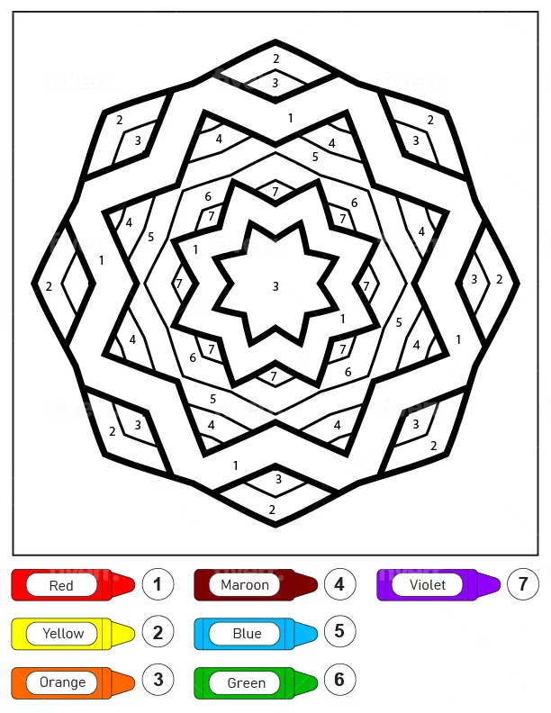 Coloring description : Download Printable Easy Star Pattern Mandala for Kids Color by Number Coloring Page