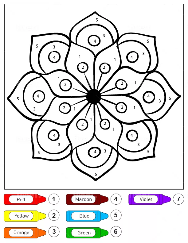 Coloring description : Download Printable Flower Drawing Mandala for Kids Color by Number Coloring Page