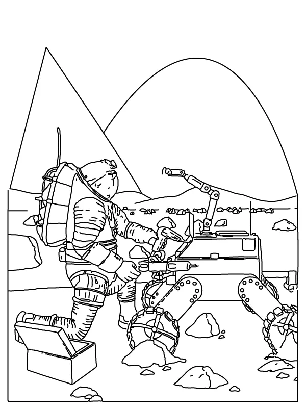 Coloring description : Download Printable Nasa Astronaut Fixing the Rover Coloring Page