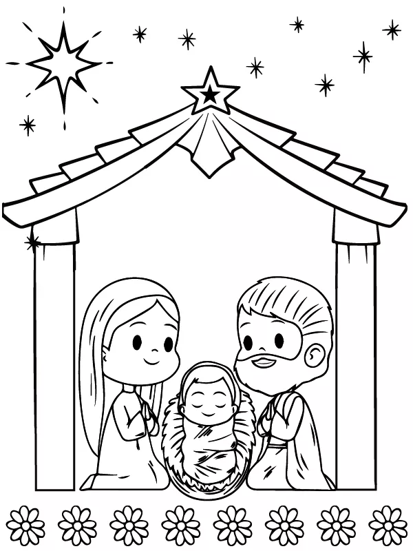 Coloring description : Download Printable Nativity Scene in a Star Frame Coloring Page