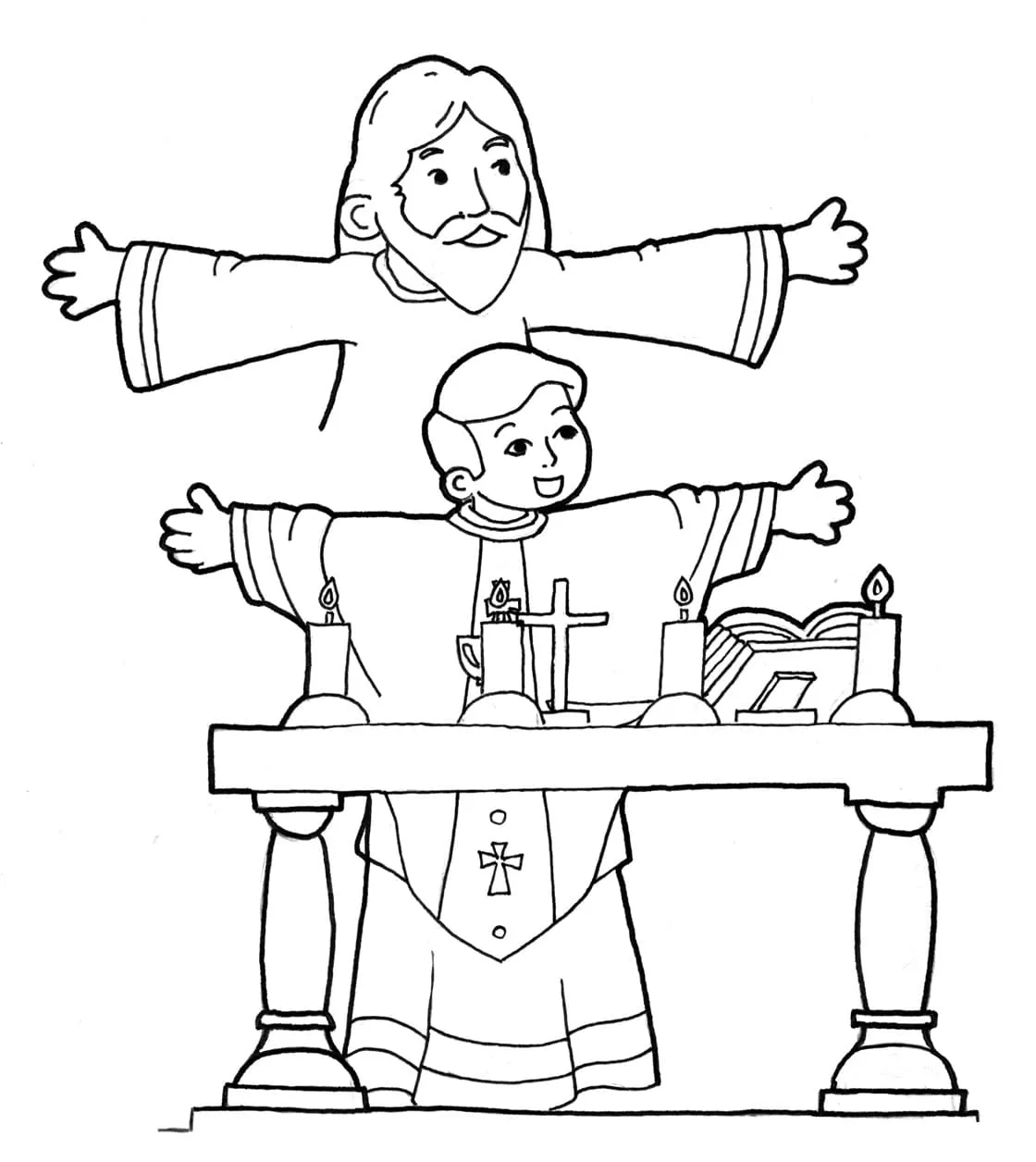 Coloring description : Download Printable Jesus and Priest Coloring Page