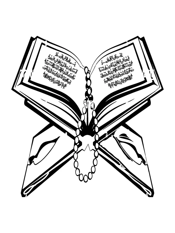 Coloring description : Download Printable Quran on Rehal Book Holder and Tasbih Coloring Page