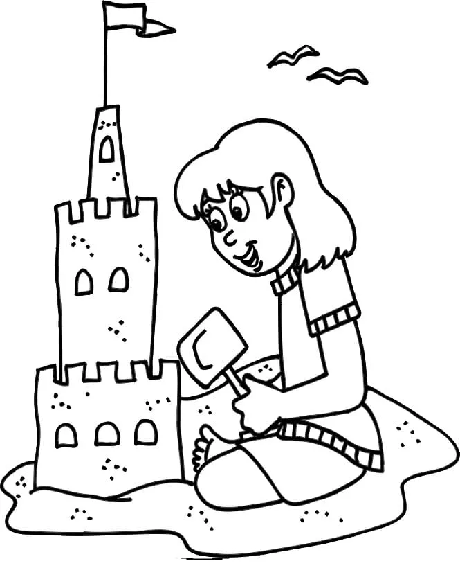 Coloring description : Download Printable A Girl Building A Sand Castle Coloring Page