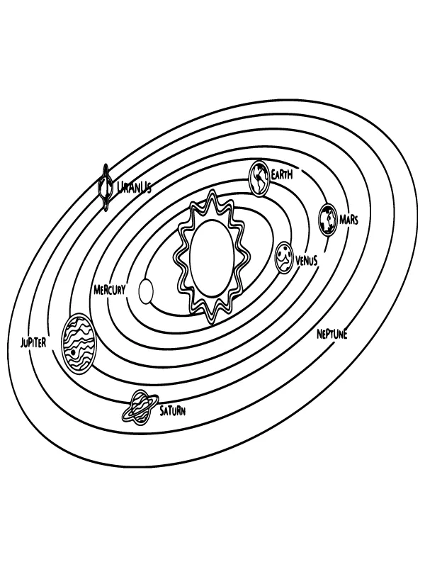 Coloring description : Download Printable Solar System’s Planets around the Sun Coloring Page