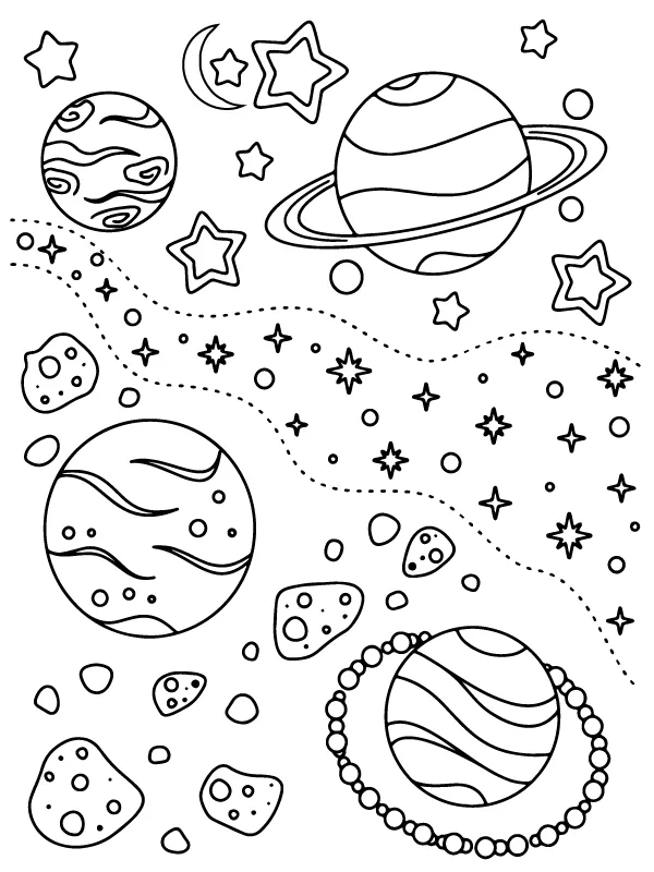 Coloring description : Download Printable Elegant Planets in Space Coloring Page