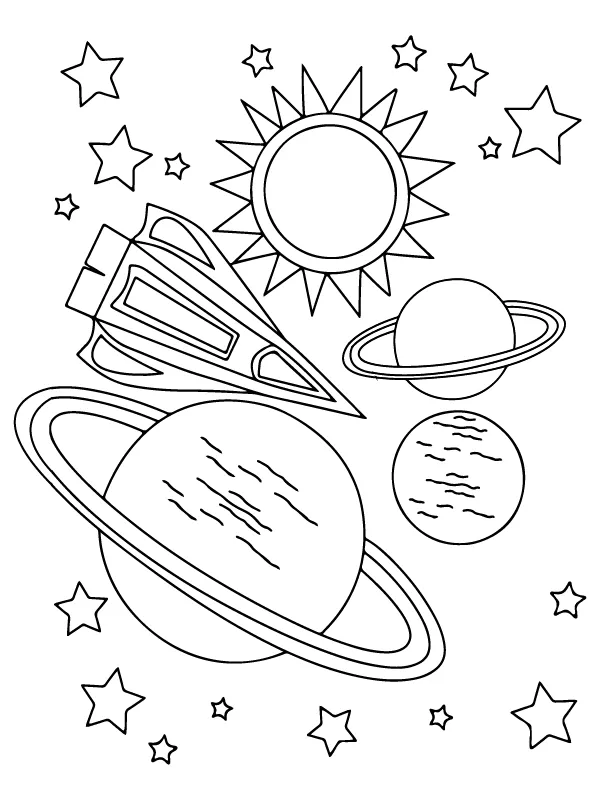 Coloring description : Download Printable Planets and Pointy Rocket in Space Coloring Page