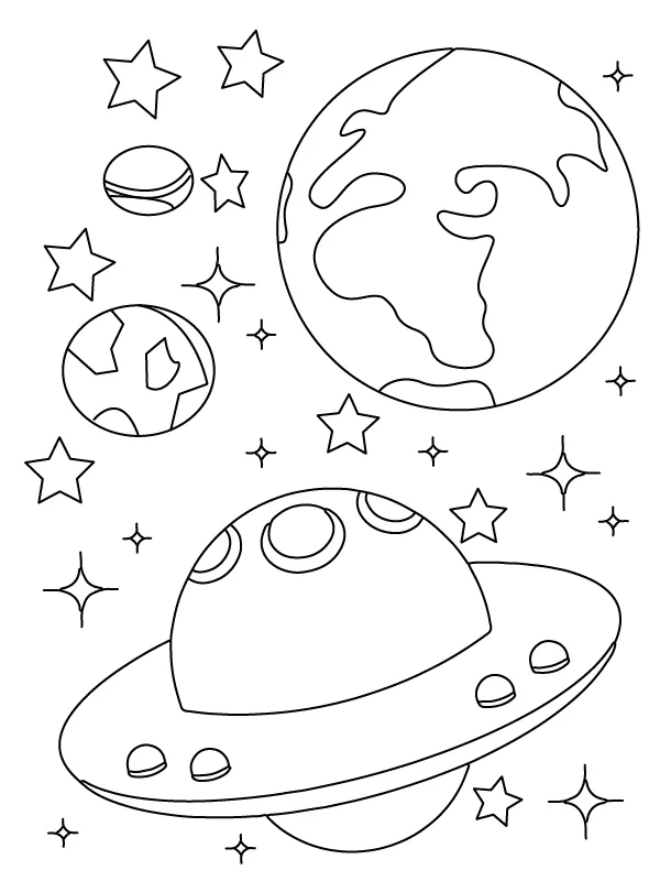 Coloring description : Download Printable Stars, Planets, and Spaceship in Space Coloring Page