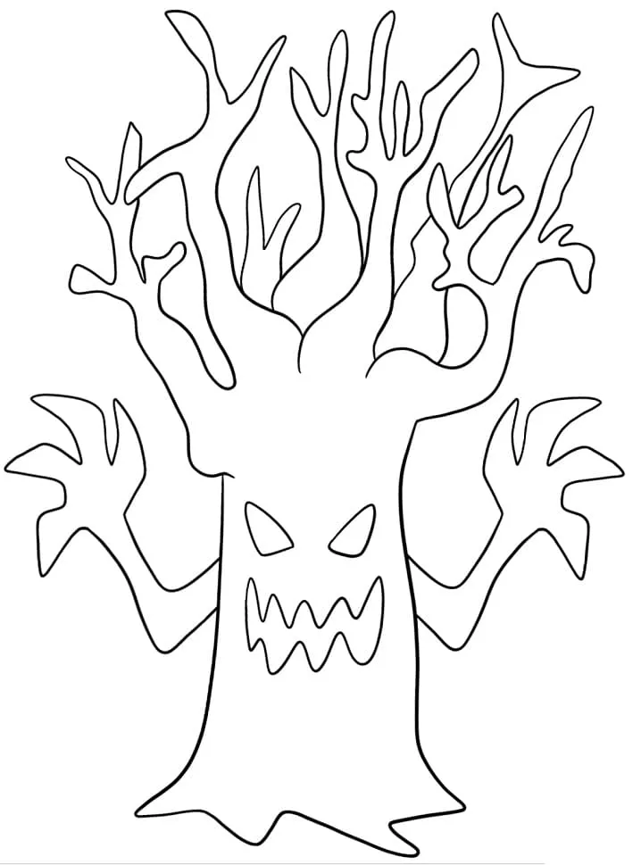 Coloring description : Download Printable Easy Spooky Tree Coloring Page