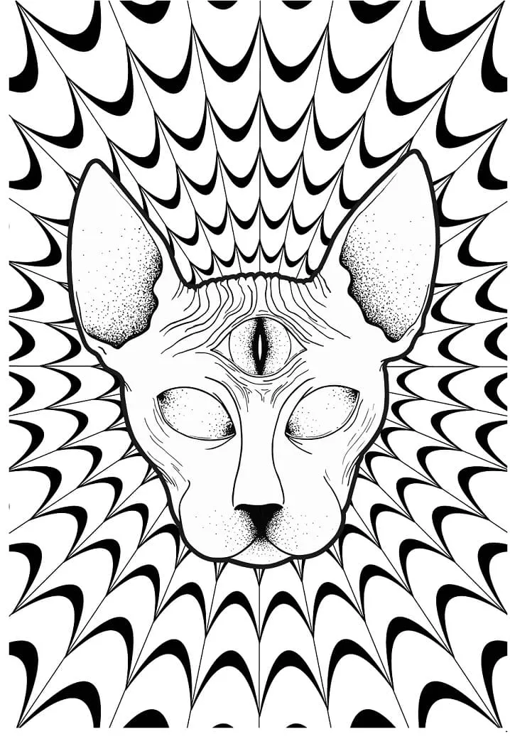 Coloring description : Download Printable Cat Psychedelic Coloring Page