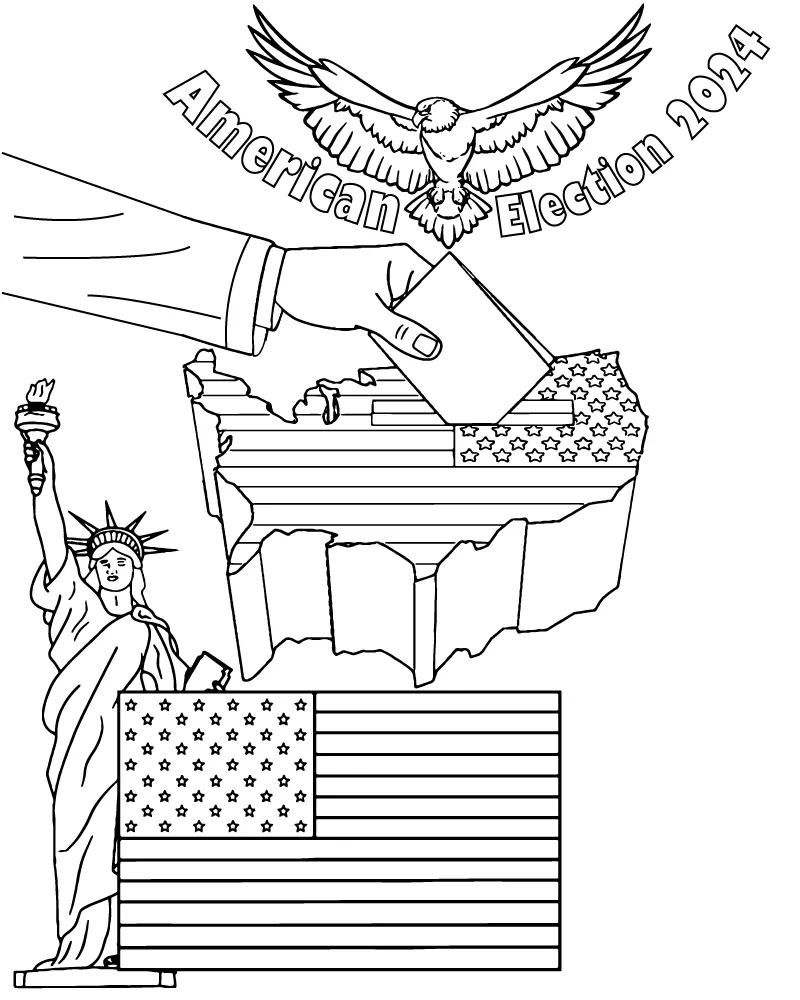 Coloring description : Download Printable American Election 2024 Coloring Page