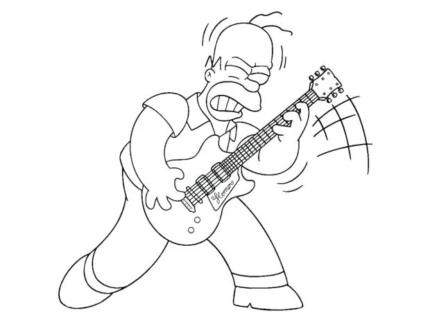 Coloring description : Download Printable Hommer Playing Guitar Coloring Page